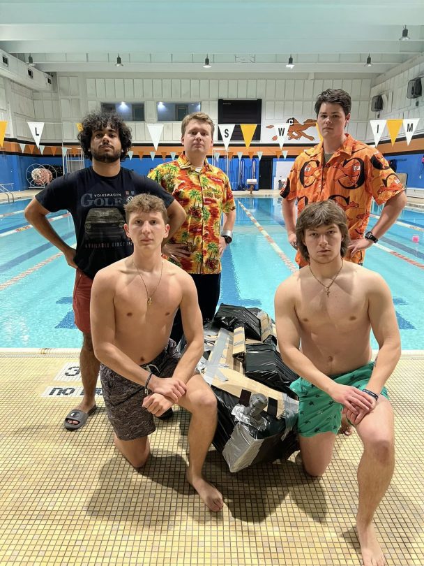 This Hawaiian-themed event includes a feast, leis and Hawaiian shirts, and a team design competition (students, faculty, staff, and alumni) to build a cardboard canoe and race it in the natatorium. Awards are given for a range of categories, like first canoe to sink, etc., in addition to those that win their races. This wildly popular activity always attracts a huge crowd.