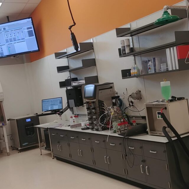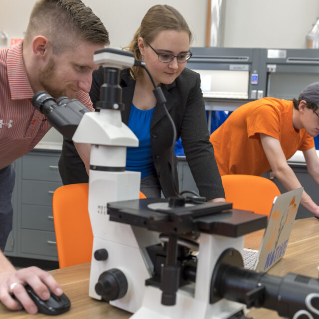 The pharmaceutical emphasis of Campbell’s chemical/pharmaceutical engineering concentration is clearly seen in the Bioprocessing Lab in the Engineering Annex. In this state-of-the-art lab students will scale-up recombinant DNA expression from the benchtop to bioreactors.