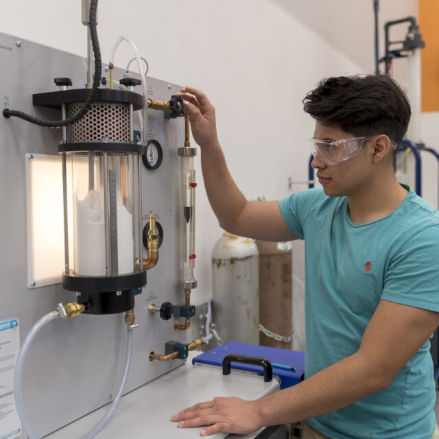 Equipment in the Energy Classlab focuses on measuring properties of liquids and gasses. Students will use Venturi meters, submersible pumps, pressure sensors, heat exchangers, and many other devices as they take courses such as Thermodynamics, Fluids, and Heat Transfer.