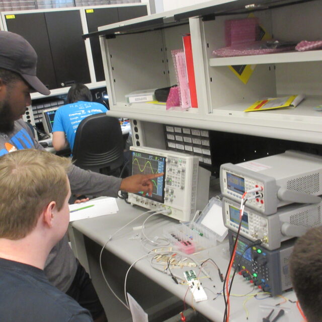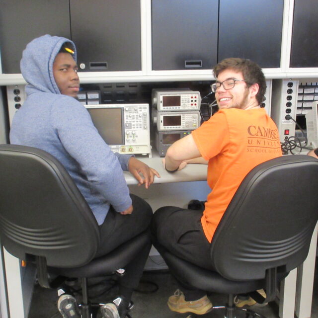 Campbell’s electrical engineering concentration focuses on embedded systems, instrumentation, and control. In this state-of-the-art lab students design, build, and learn about electronics, embedded systems, sensors, motors, controls, communications, networks, and electromagnetic transmission.